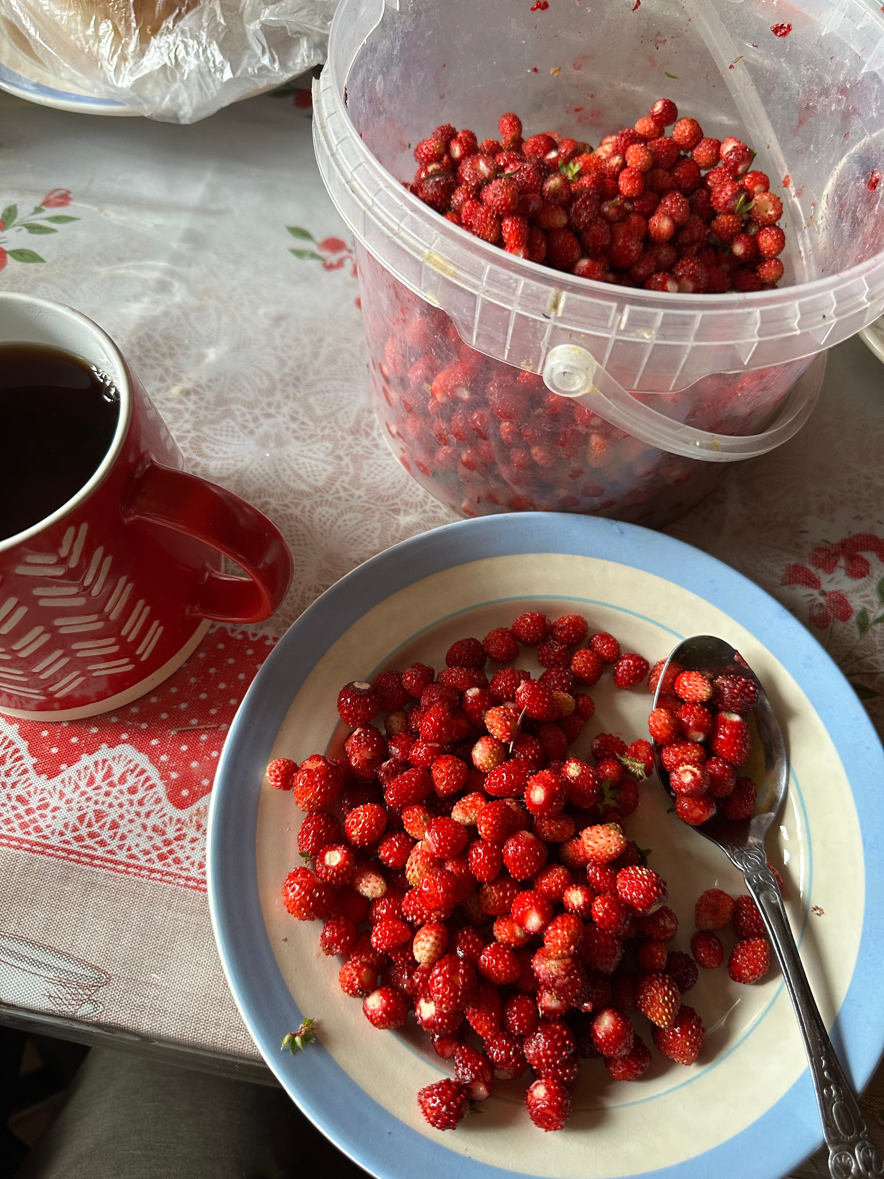 A handful of fresh, straight out of the forest, wild strawberries from which a spider, a worm, and a small ant crawled from my plate. All good signs that those berries won’t poison you. The more you see, even spiders come with an upside.