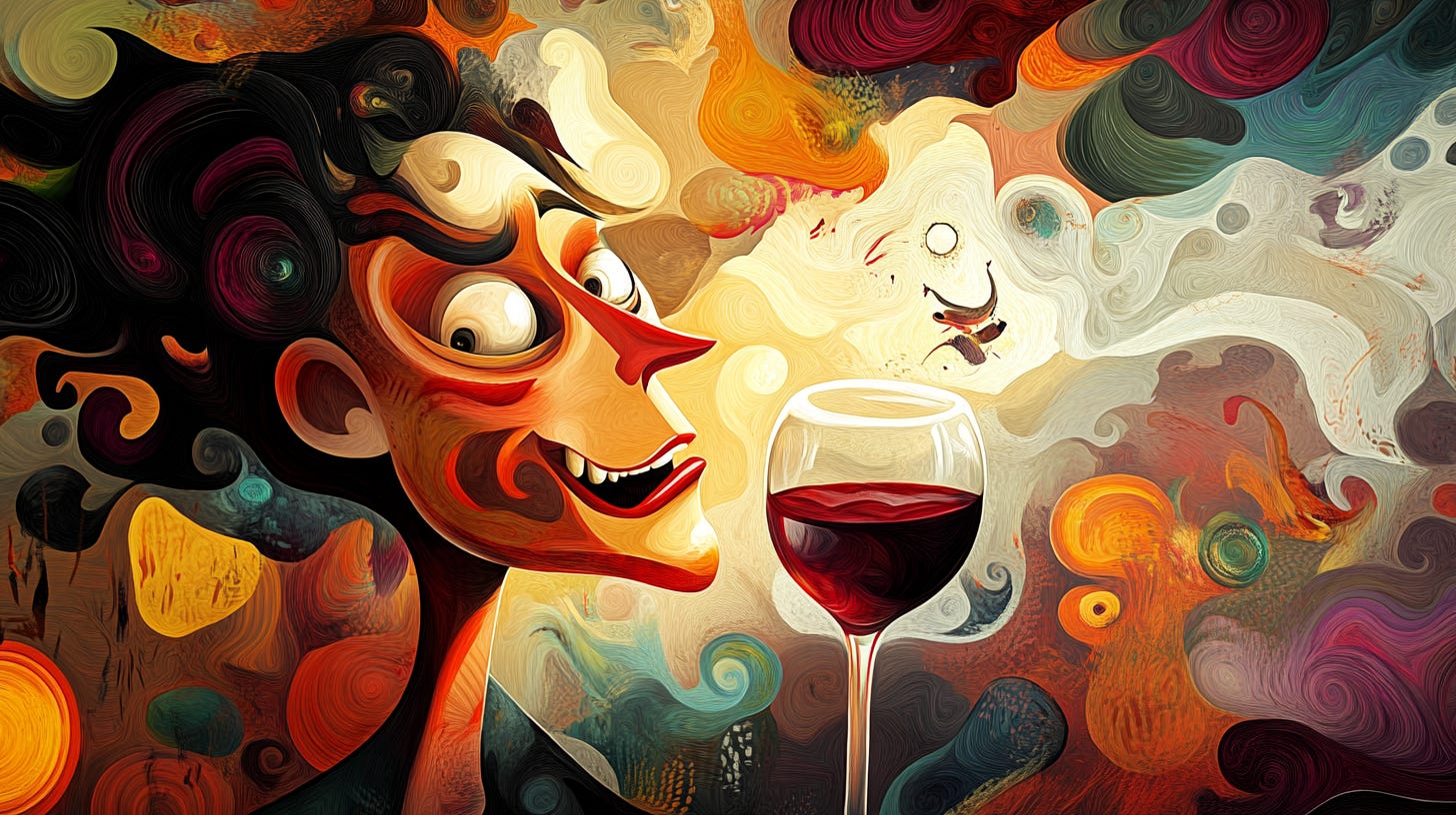 Whatever suits your story, with a glass of wine.